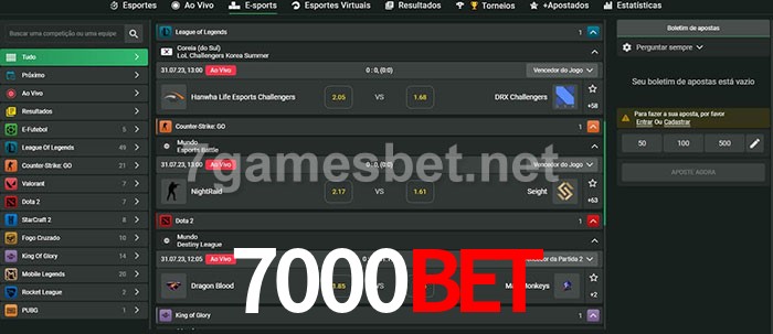 A aposta 7000Bet oferece aos jogadores a experiência mais conveniente de apostas em eSports!